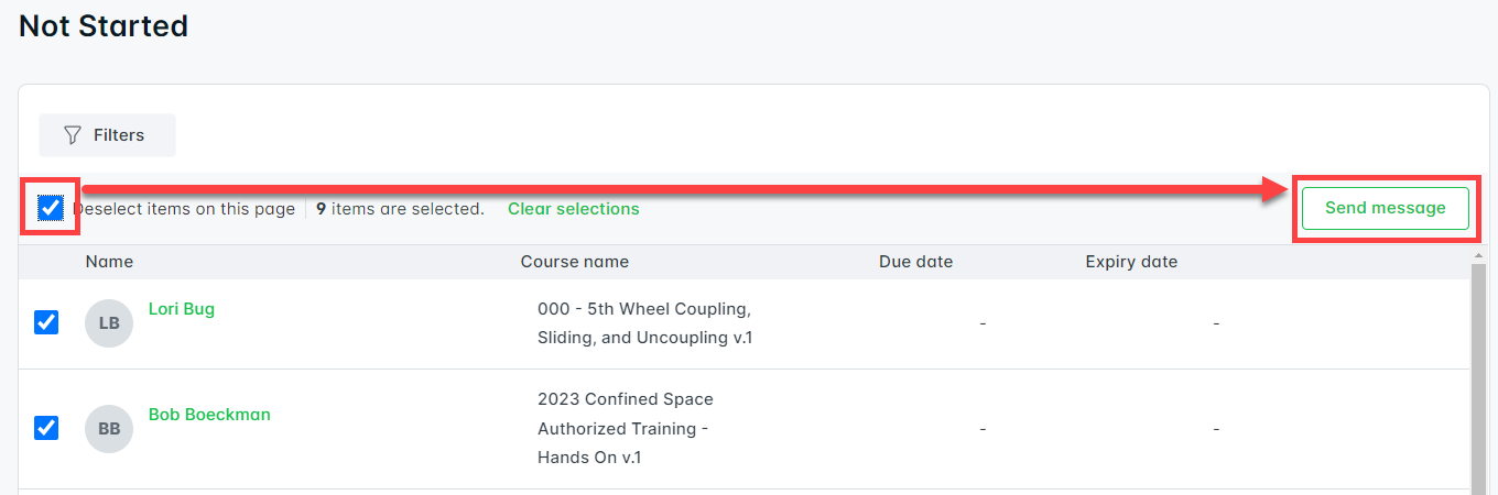 2. Select Courses, Groups, or User status to view a smaller set of learners, and select Apply.